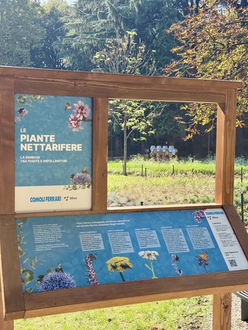 Rigenerazione avvenuta grazie alla creazione di aiuole fiorite - composte da oltre 30 specie diverse di piante autoctone - selezionate appositamente per l’apporto in nettare e la fioritura scalare; due ulteriori aiuole verdi nettarifere, realizzate direttamente da Comoli Ferrari; la messa a dimora di 10 piante arbustive, per aumentare la varietà ecologica e il valore ambientale complessivo dell’area.