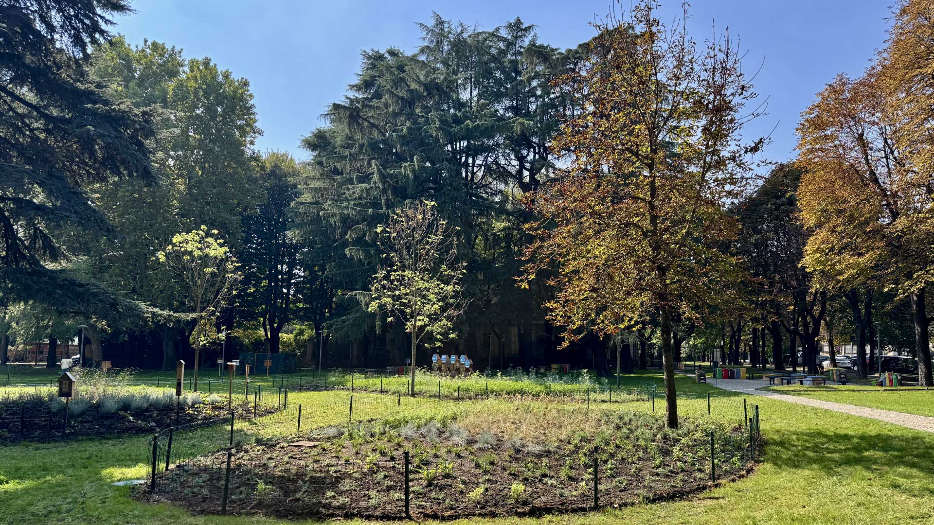 Rigenerazione avvenuta grazie alla creazione di aiuole fiorite - composte da oltre 30 specie diverse di piante autoctone - selezionate appositamente per l’apporto in nettare e la fioritura scalare; due ulteriori aiuole verdi nettarifere, realizzate direttamente da Comoli Ferrari; la messa a dimora di 10 piante arbustive, per aumentare la varietà ecologica e il valore ambientale complessivo dell’area.